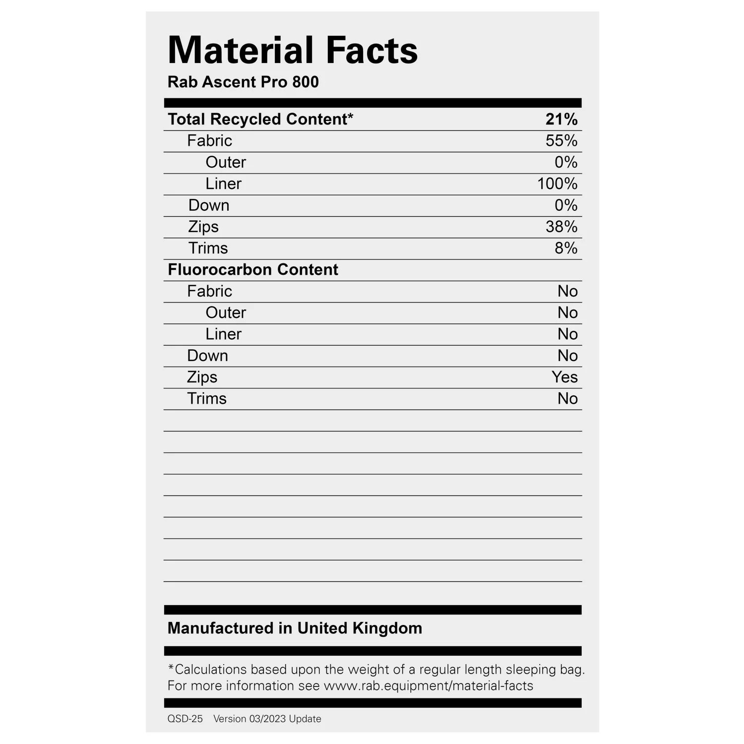 Produktinformationen "Ascent Pro 800 – Daunenschlafsack, Regular (bis 185 cm), Left Zip"
