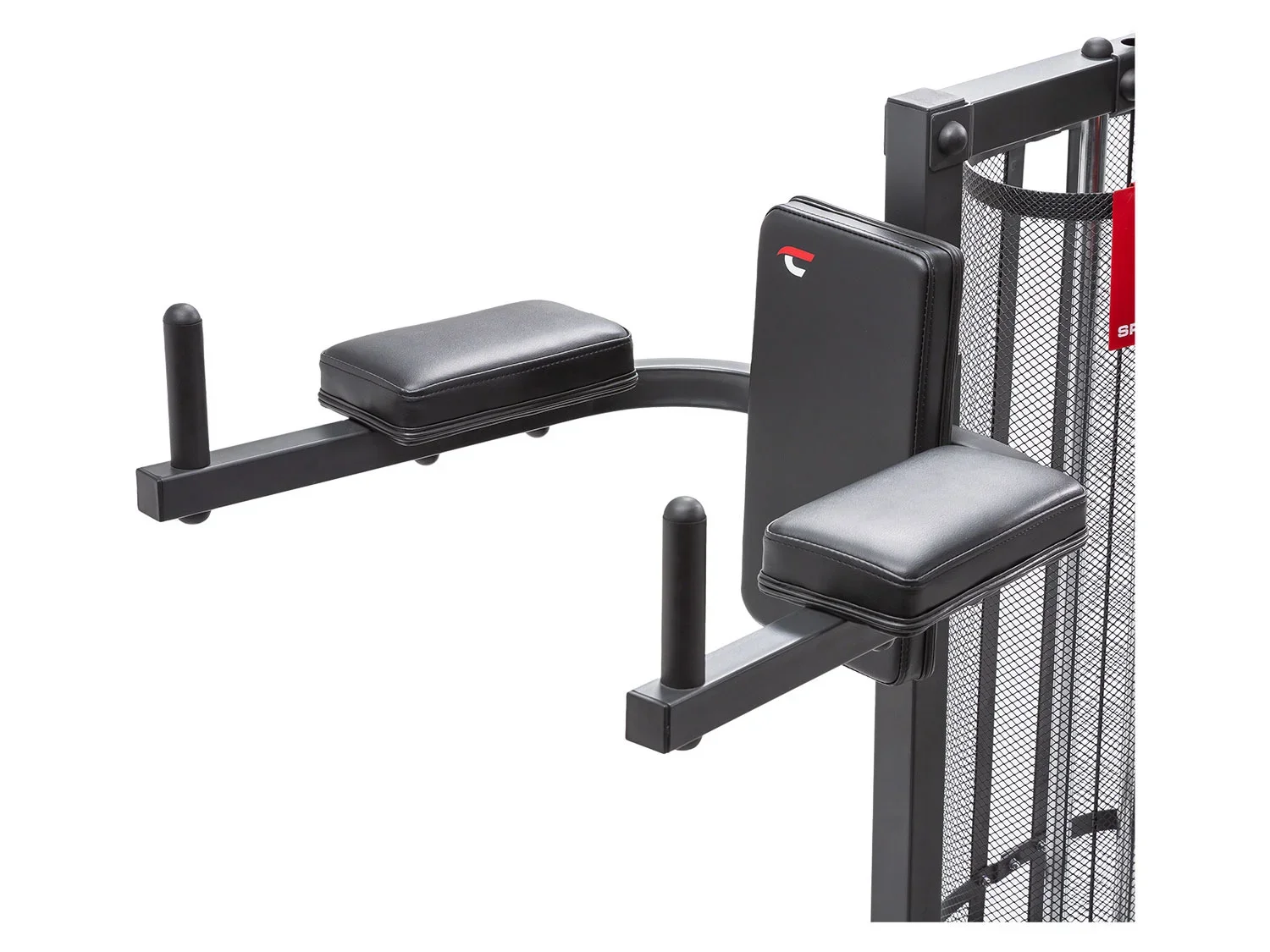 Die Kraftstation SP 5000 vereint mehr als 45 Übungsmöglichkeiten in einem Gerät und eignet sich damit ideal für Ganzkörpertraining im Home Gym. Brust, Rücken, Arme, Bauch, Schultern, Beine und Po können gezielt über Latzug, Butterfly, Brustpresse, Curlpult sowie Beinbeuger-/Beinstrecker trainiert werden.
