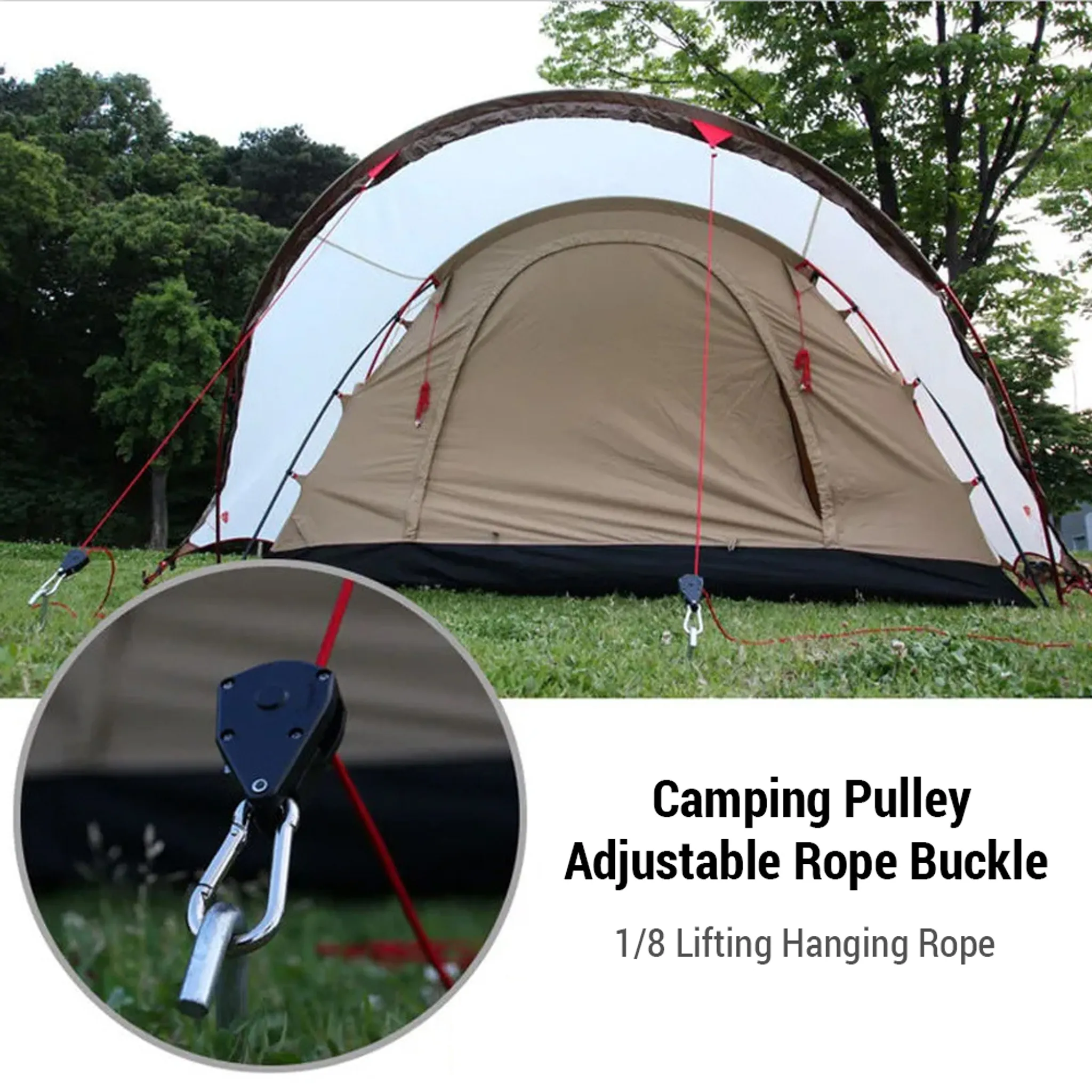 | Im Paket | 4 × Camping-Seilschnallen mit verstellbarem Hebeseil (2 m) |