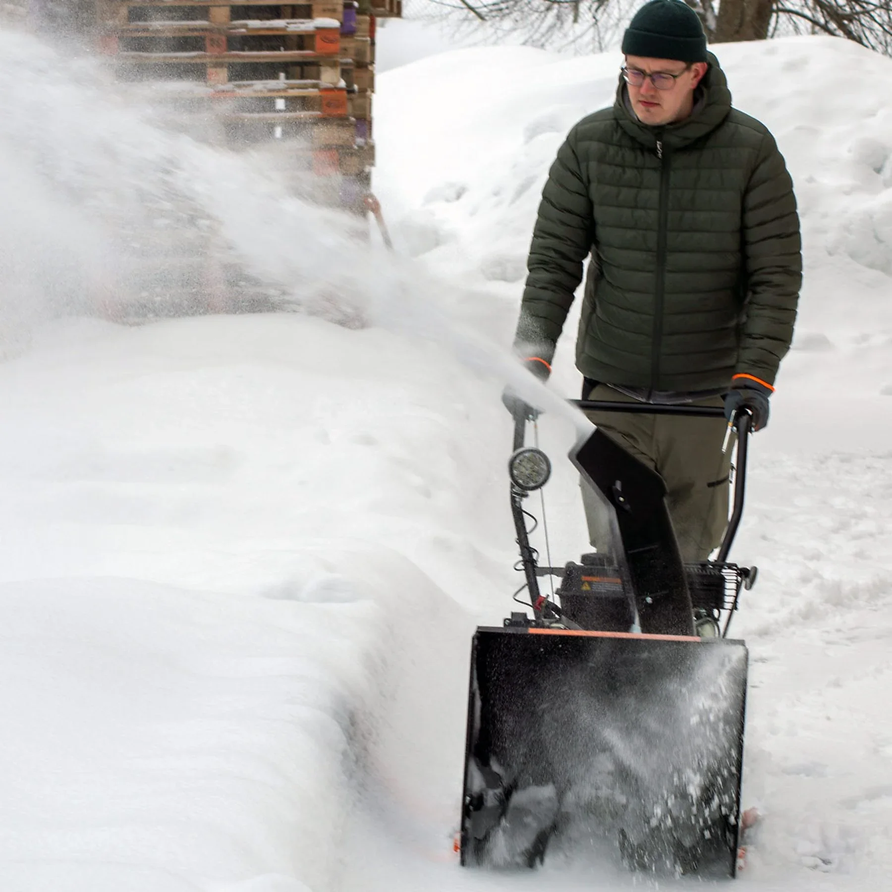 Der Elektro- oder Seilzugstart erleichtert das Anlassen im Winter, der Arbeitsscheinwerfer sorgt für sichere Orientierung bei schlechten Lichtverhältnissen und der große 3,6-Liter-Tank ermöglicht längere Arbeitseinsätze ohne Unterbrechung.