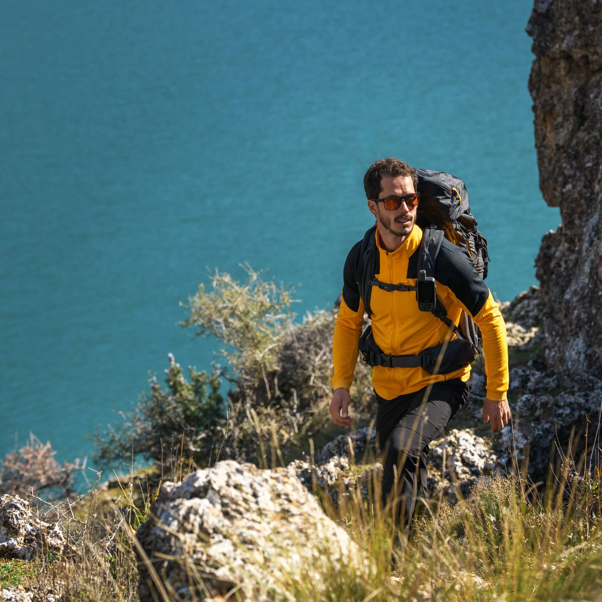 Das robuste Gehäuse ist nach Militärstandard geprüft und wasserdicht nach IPX7. Das transflektive Farbdisplay bleibt auch bei direkter Sonneneinstrahlung gut ablesbar. In Kombination mit dem barometrischen Höhenmesser und dem 3-Achsen-Kompass eignet sich das Gerät ideal für Trekking, Bergtouren, Expeditionen und Geocaching.