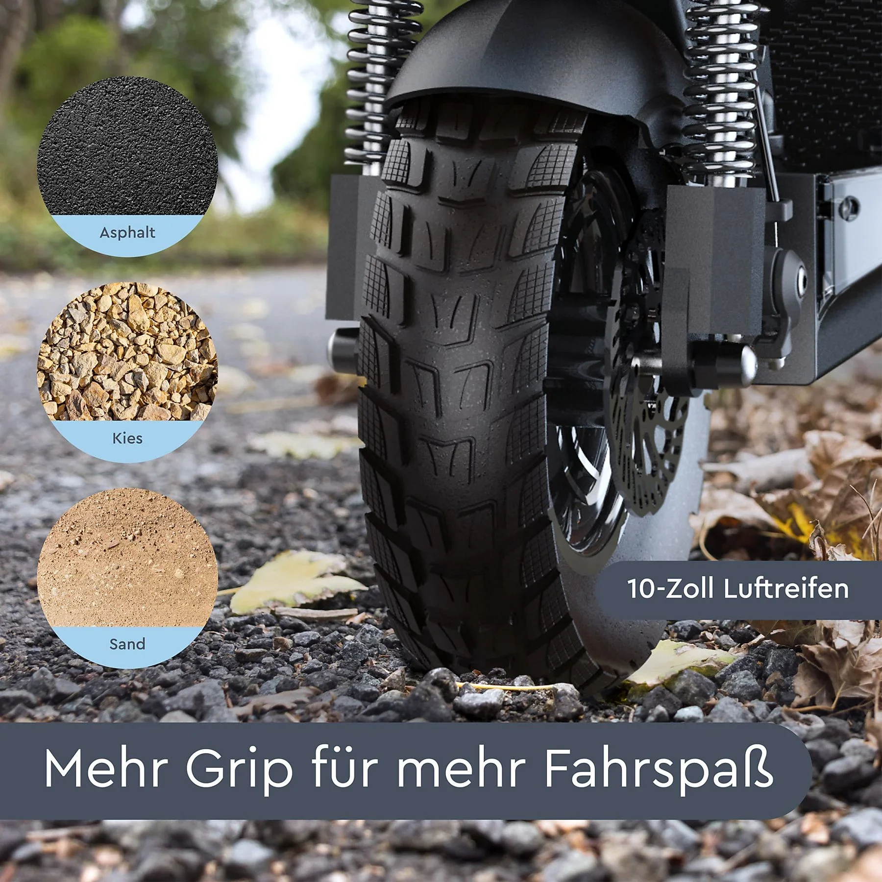 | Reifen | 10 Zoll Offroad-Luftreifen |