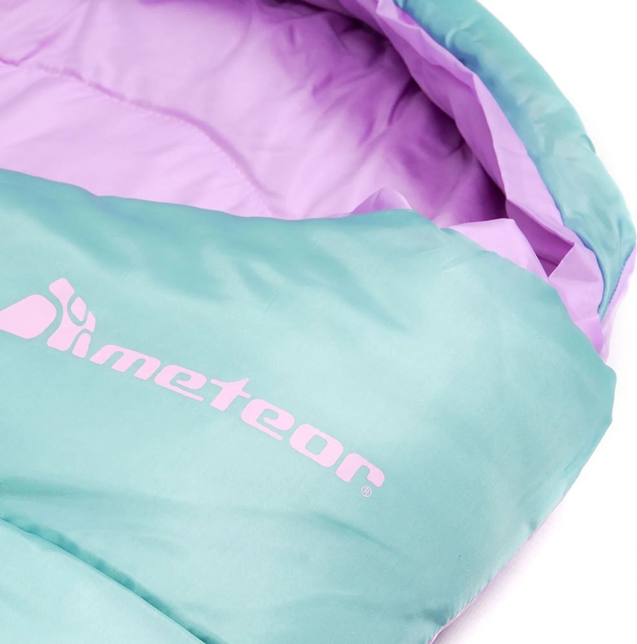 Der Meteor Ymer Premium Kinderschlafsack in Rosa/Blau wurde speziell für Kinder entwickelt, die Komfort und Sicherheit beim Schlafen im Freien schätzen. Mit seinem weichen, hautfreundlichen Innenfutter und der leichten Hohlfaserfüllung ist er ideal für den Sommer, für Hüttenübernachtungen oder Campingausflüge.