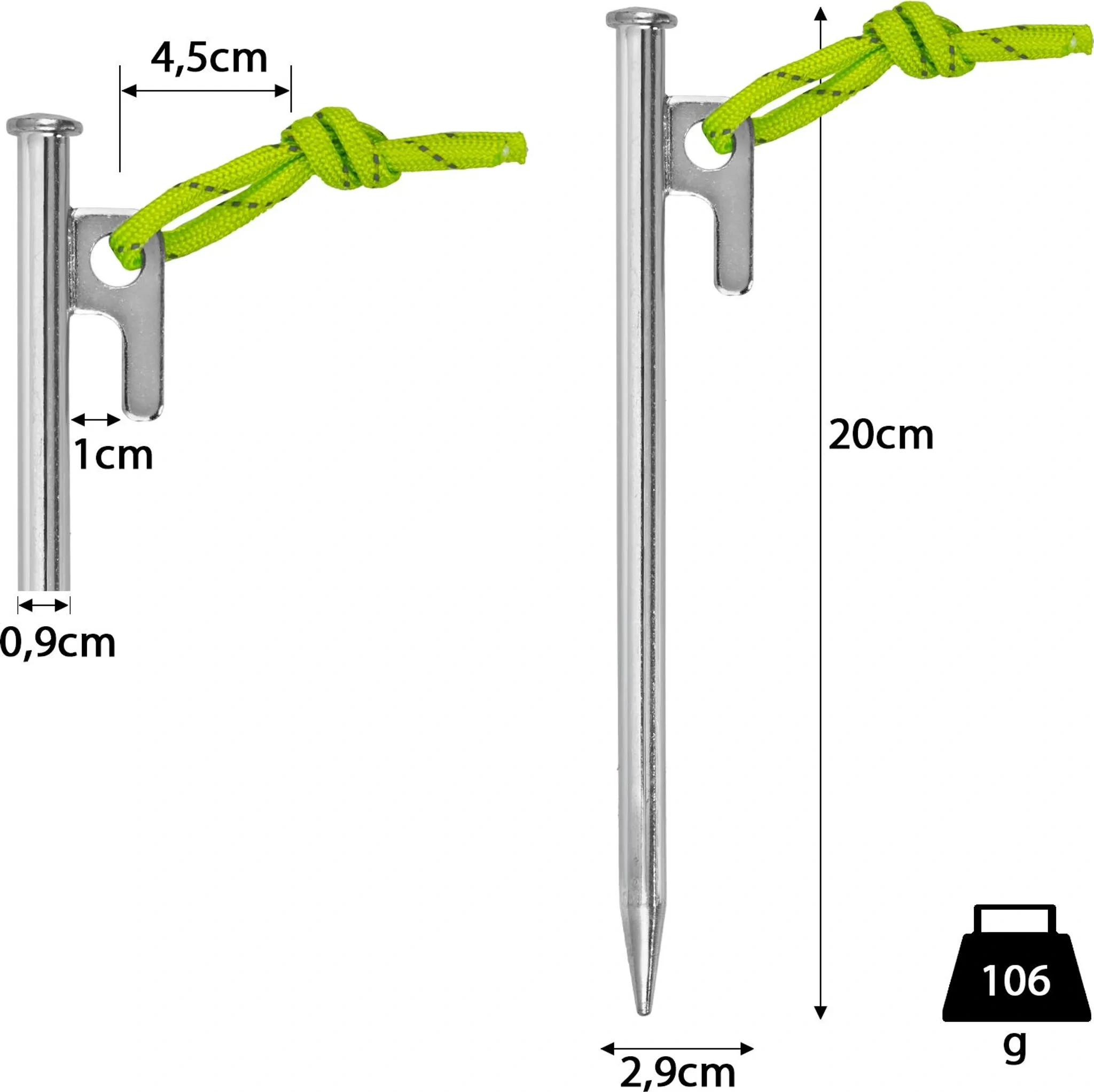 Jeder Hering verfügt über einen praktischen P-Haken sowie eine fluoreszierende Leine, die das Auffinden im Dunkeln erleichtert und das Herausziehen vereinfacht. Ideal für Camping, Festivals oder Outdoor-Abenteuer.