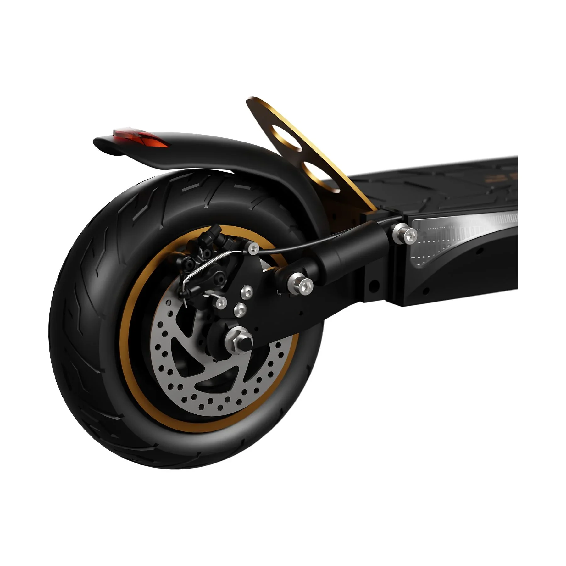 Ein leistungsstarker 500-Watt-Nabenmotor bietet dynamische Beschleunigung und ein ruhiges Fahrverhalten. Die groß dimensionierten 10-Zoll-Luftreifen, die doppelte Federung sowie das rutschfeste Trittbrett gewährleisten Stabilität und hohen Fahrkomfort – auch auf unebenen Strecken.