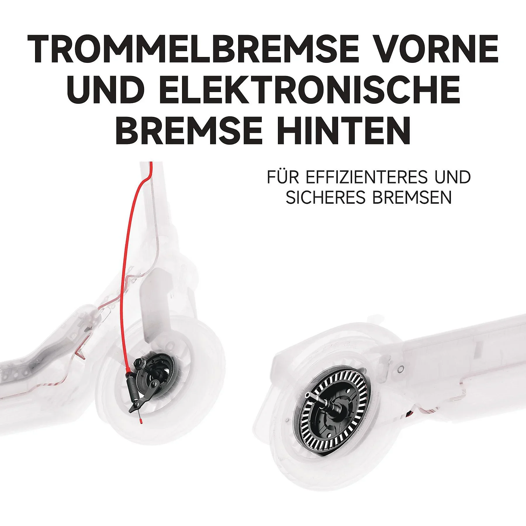 | Bremssystem | Trommelbremse vorne, elektronische Bremse hinten |
