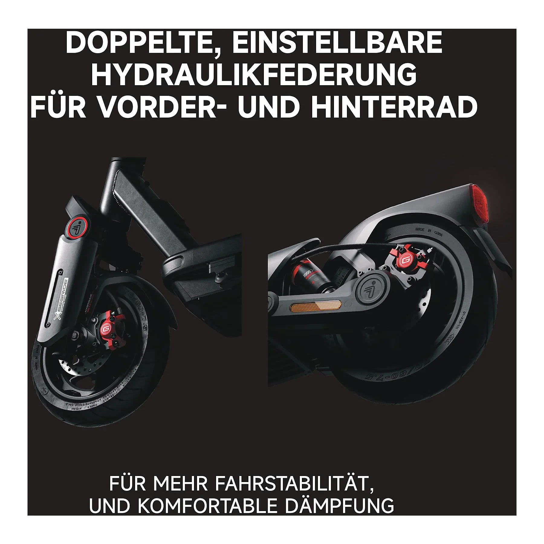 Highlights: Doppelte hydraulische Federung, extrem hohe Reichweite, SegRide™-Stabilitätskontrolle, selbstabdichtende 11-Zoll-Reifen, FlashCharge-Schnellladung, Apple „Find My“-Unterstützung.