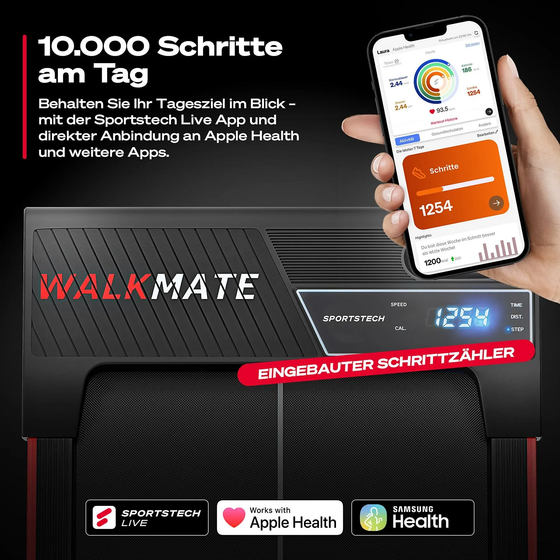 Sportstech WalkMate – Kompaktes Walking Pad, Schwarz