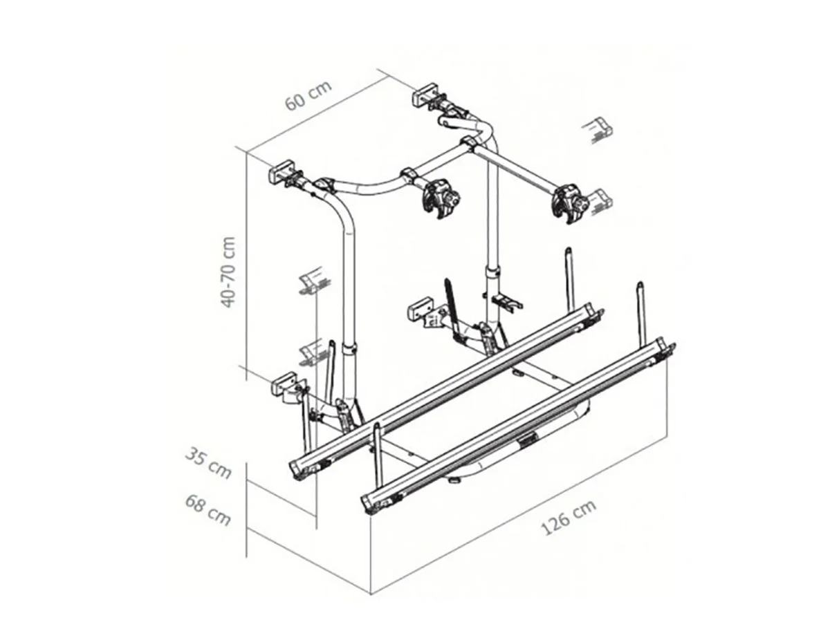 Die Fahrräder werden am Rahmen fixiert, mitgelieferte Abstandhalter erleichtern das sichere Befestigen. Dank kompakter Abmessungen ist der Sport G2 Short besonders beliebt im Campingbereich und lässt sich mit vielen Fahrzeugaufbauten kombinieren.