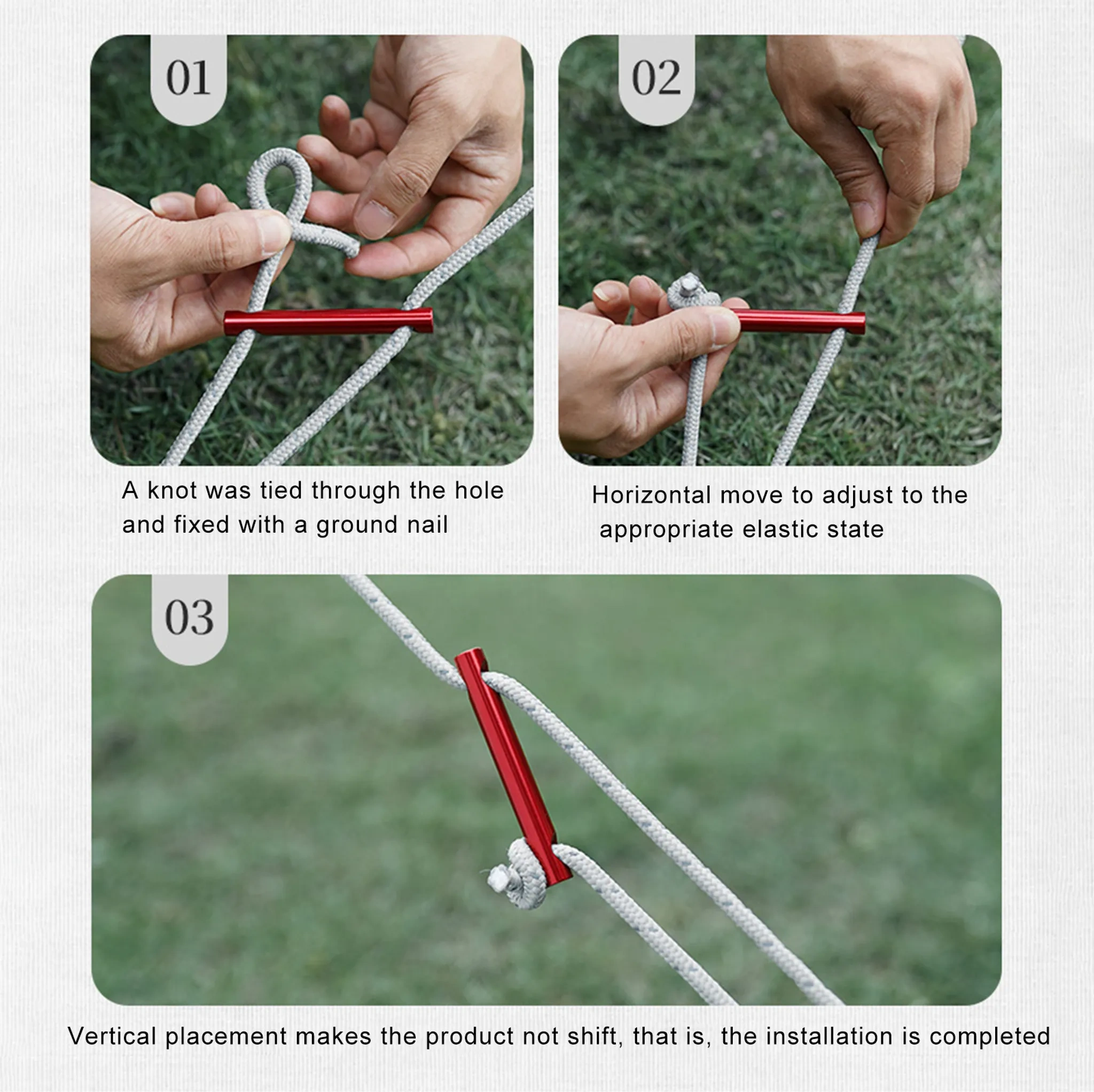 Gefertigt aus robuster Aluminiumlegierung, überzeugt der Spanner durch hohe Stabilität bei minimalem Gewicht. Die Installation ist unkompliziert und ohne zusätzliches Werkzeug möglich – perfekt für Zelte, Planen, Abspannungen oder Tarps im Outdoor-Einsatz.