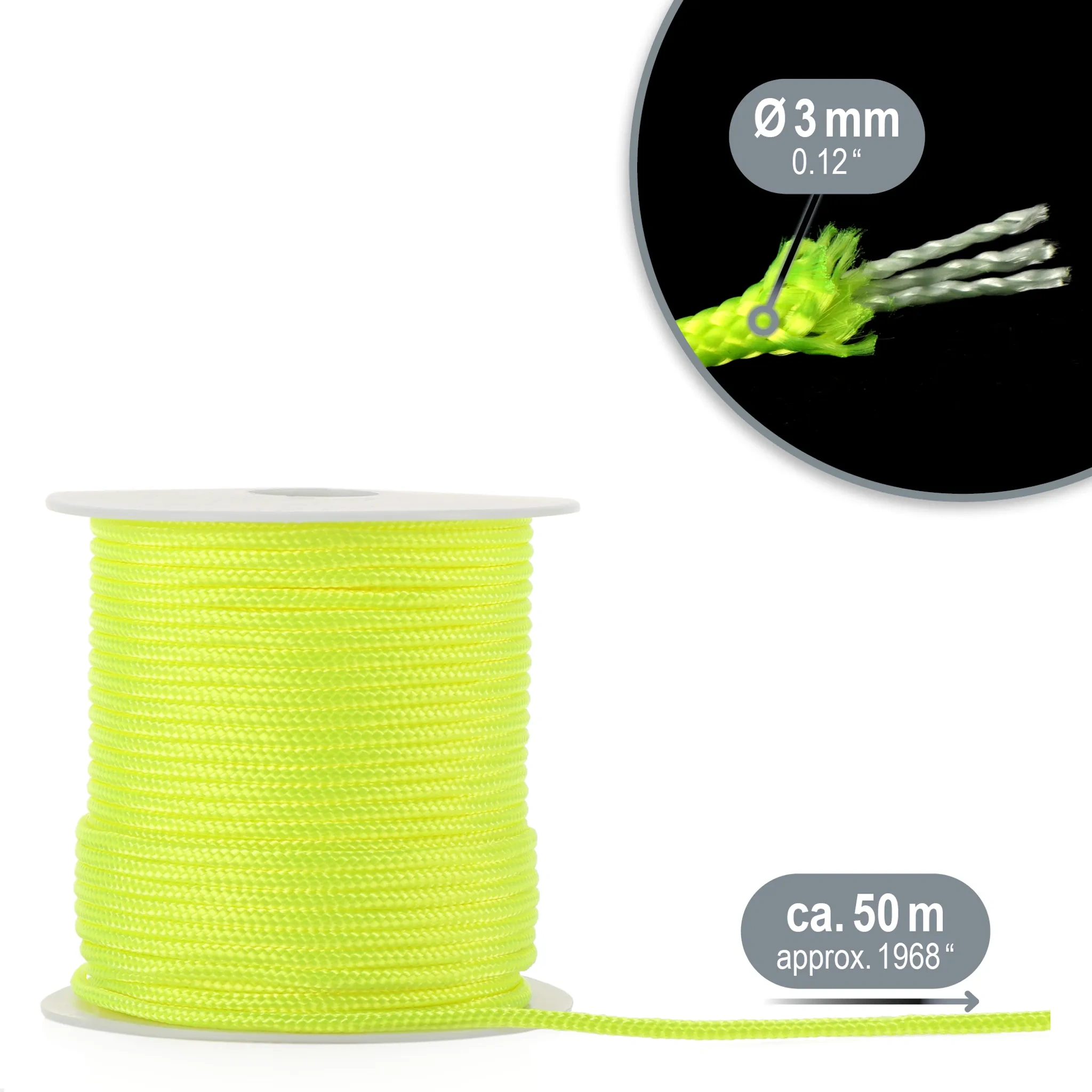 Produktinformationen "com-four® Paracord Schnur Ø 3 mm, 50 m – Nylonseil mit 3-Kern-Strängen für Camping & Outdoor"
